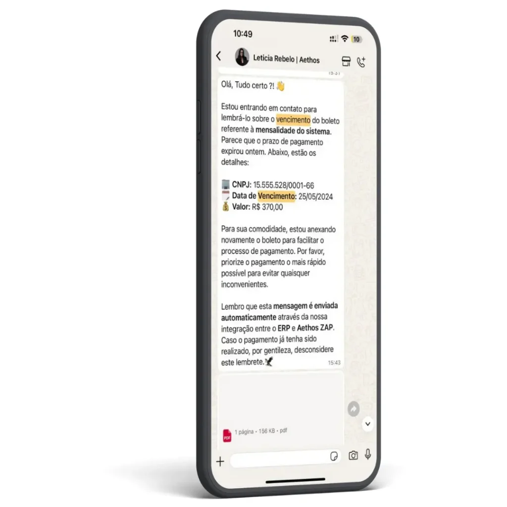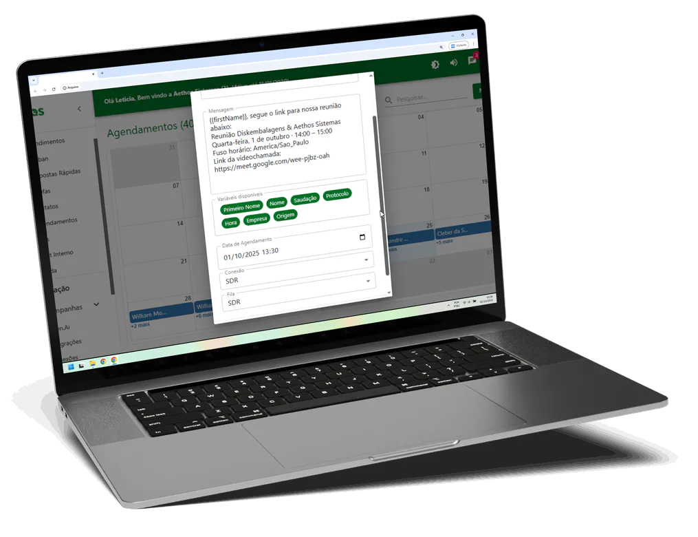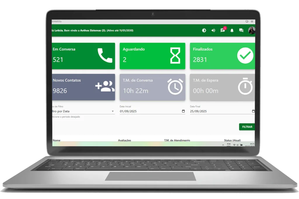 Com o Aethos Zap, você integra o WhatsApp ao seu ERP, centraliza mensagens e automatiza respostas, ganhando agilidade e qualidade no atendimento.