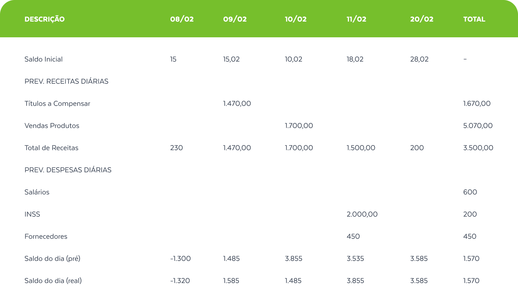 Antecipe cenários financeiros e acompanhe em tempo real a entrada e saída de recursos.